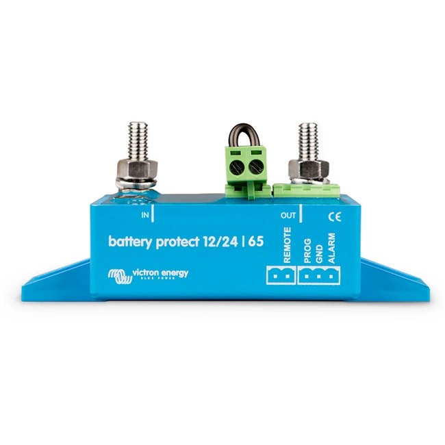 - Ylijännitesuojaus: suojelee herkkiä sähkölaitteita korkeilta jännitteiltä, kuorma kytketään irti tasajänniteen ylittäessä 16V (@ 12V järj.) tai 32V (@ 24V järj.)